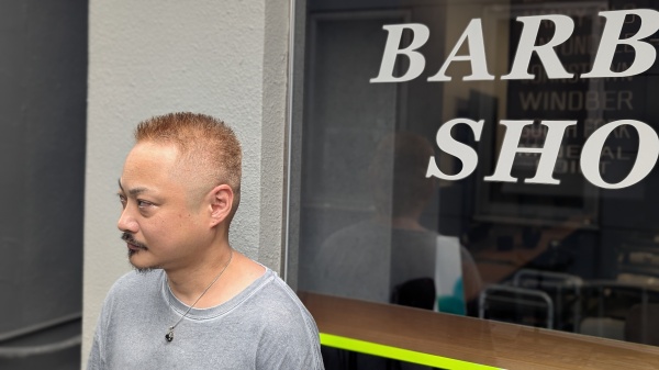 ブラウン系のカラーで外国人風ボウズフェードに。
